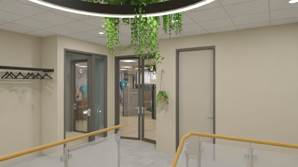 🌿 In elke ruimte hebben we gewerkt met veel groen: planten zorgen voor een frisse, uitnodigende sfeer en versterken het gevoel van een levendige werkomgeving.