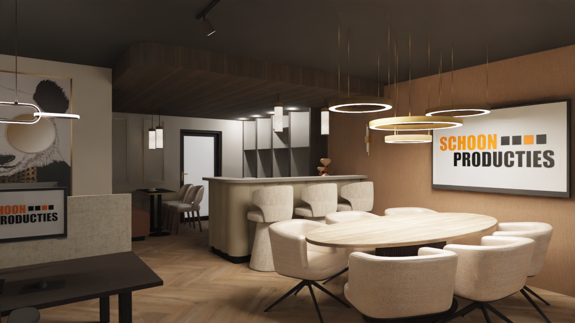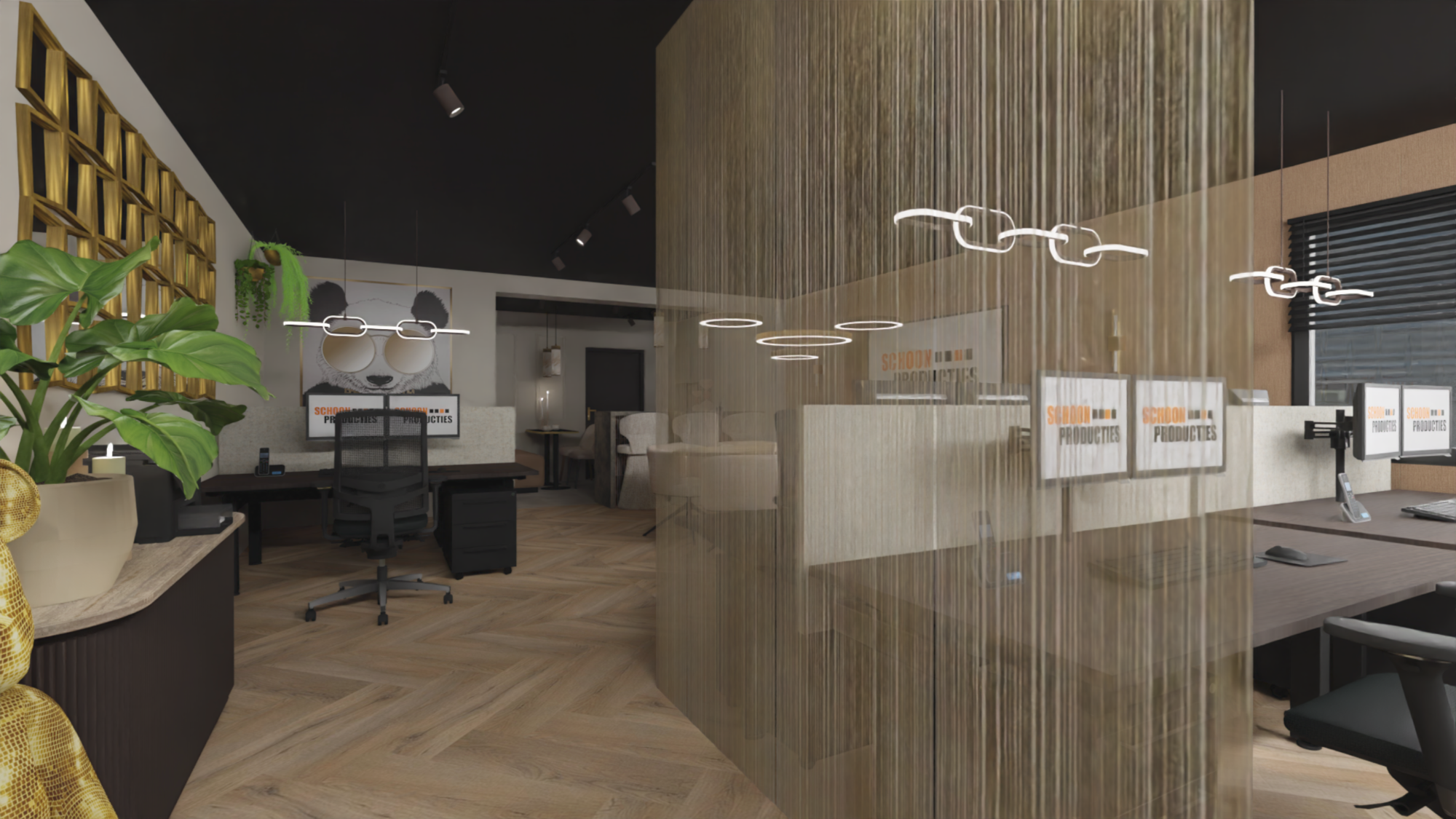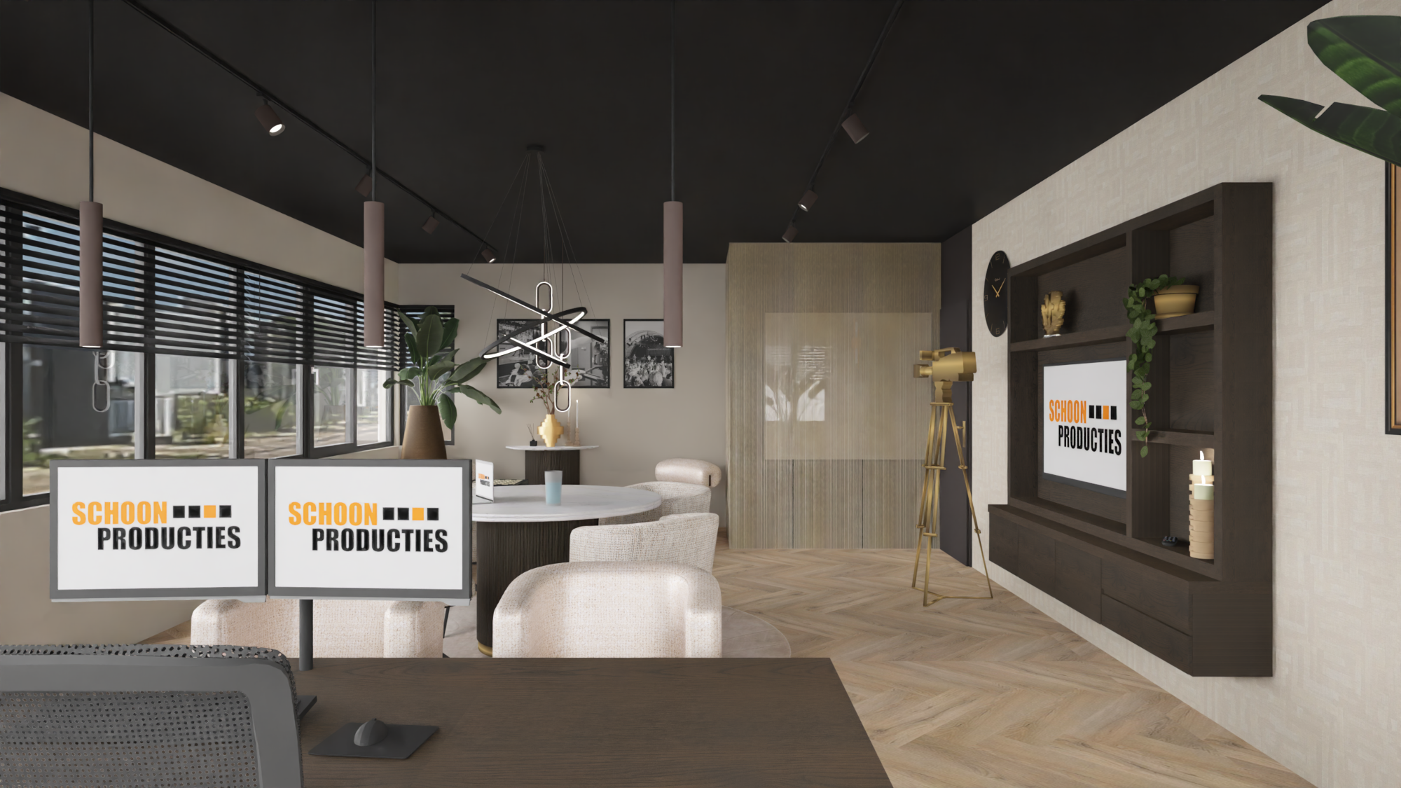 Voor SchoonProducties, een toonaangevend videoproductiebedrijf, ontwikkelden we een compleet nieuw kantoorontwerp dat hun identiteit en manier van verhalen vertellen weerspiegelt. Waar zij verhalen vangen in beeld, vertaalden wij dat naar een inspirerende werkomgeving.